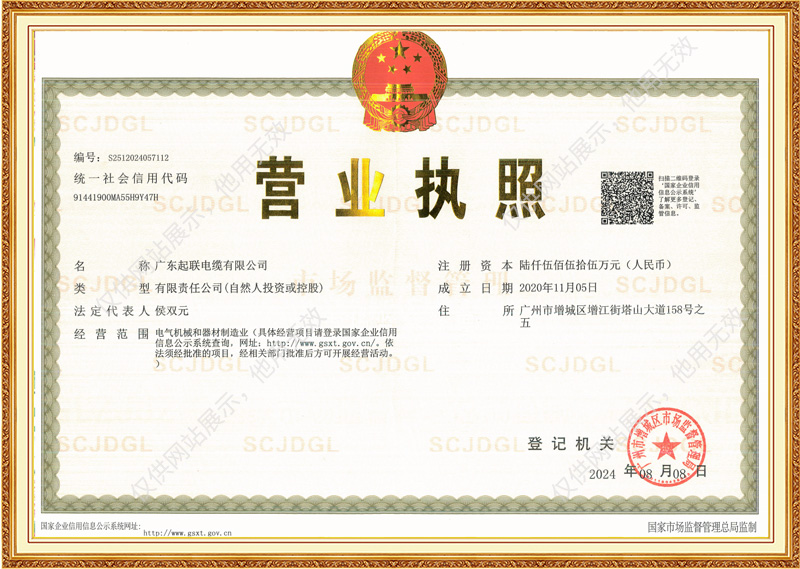 广东起联电缆有限公司位于广州东部,毗邻东莞、惠州,坐落于粤港澳大湾区核心区域、全国城乡融合发展试验区、著名的“荔枝之乡”广州增城,公司致力于用户的普遍需求与特殊需求,全力解决客户“一站到位”的痛点。专注于电力电缆、架空导线、新能源专用电线电缆、特种电缆、橡胶电缆,家装电线等六大类全系列、全规格、高品质线缆的系统研发、设计、制造、营销与服务。涉及新能源行业、智能电网、能源电力、绿色建筑、智能制造、智慧交通、港口码头、工矿隧道、民生用电等领域,深受用户信赖。